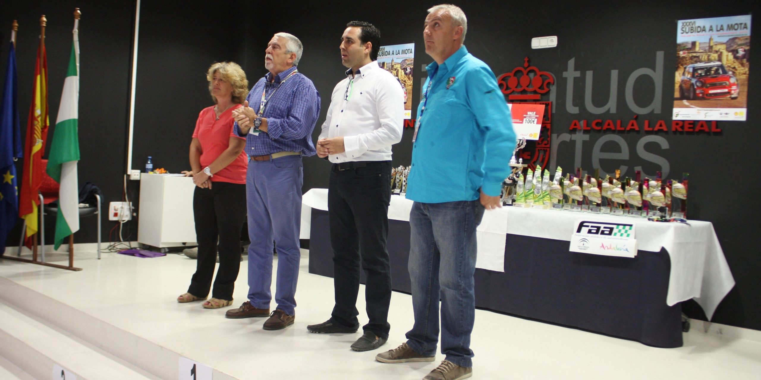El alcalde de Alcalá la Real, Carlos Hinojosa, la concejala de Deportes y Salud, Mª Carmen Rosales, el Presidente de la Federación Andaluza de Automovilismo, Francisco Melero, y el Presidente del Motor Club Alcalá, Javier Gutiérrez, han hecho entrega en el Edificio Joven de Alcalá la Real de los trofeos de la XXXVI Subida a la Mota, disputada entre ayer, sábado 5 de septiembre y hoy, 6 de septiembre, en dos fases. Al comienzo del acto todas las personas asistentes han guardado un minuto de silencio, en recuerdo de las siete personas que han fallecido a causa del trágico accidente durante el transcurso del Rally de A Coruña.