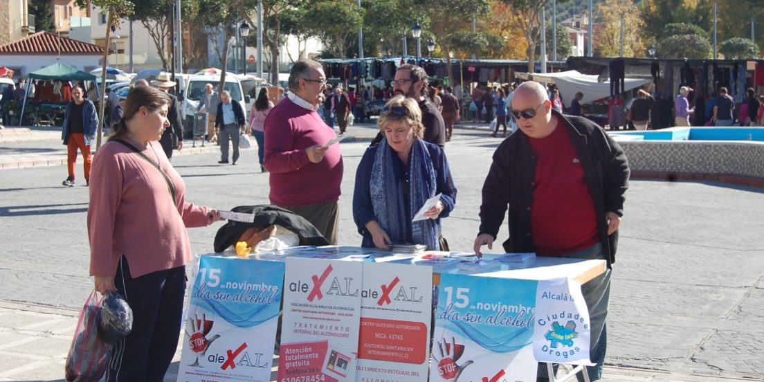 Alcalá la Real inició el martes los actos de conmemoración del Día Sin Alcohol que se celebra el domingo 15 de noviembre. La primera actividad se llevó a cabo con la instalación de una mesa informativa en el mercadillo semanal. En la misma han tomado parte Soledad González, educadora municipal del programa Ciudades ante las Drogas, José Luis Gutiérrez, técnico de atención a la ciudadanía del Hospital de Alcalá la Real, y José Alameda, presidente de la asociación de alcalaínos ex alcohólicos, Alexal.