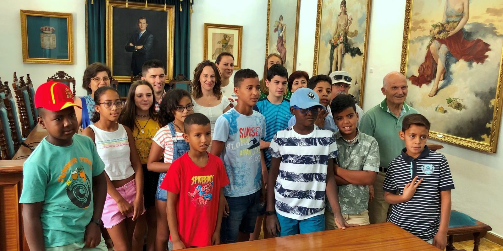 20 de agosto del 2019El alcalde accidental, Ángel Montoro y la edil de Servicios Sociales, Mercedes Linares, han recibido esta mañana en el Ayuntamiento al grupo de niños saharauis que pasa el verano con familias de acogida alcalaínas y mureñas. Lo hacen gracias al proyecto ‘Vacaciones en Paz’ que permite a menores de entre 8 y 12 años mejorar sus condiciones de vida al menos durante dos meses, tratar sus problemas de salud y al mismo tiempo conocer la cultura de España.