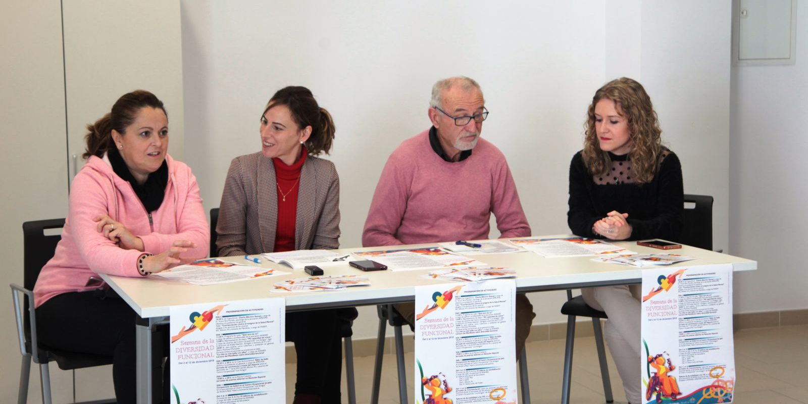 28 de noviembre del 2019El Ayuntamiento de Alcalá la Real visibiliza la Semana de la Diversidad Funcional del 2 al 16 de diciembre con un programa de actividades organizado por el área de Servicios Sociales. El itinerario se ha presentado este mediodía por la edil de Servicios Sociales, Mercedes Linares; la presidenta de AFANÍES, Trinidad Cano; el delegado de APROMPSI en Alcalá la Real, Antonio Ibáñez y Mónica López, de la asociación ÁLAMOS.