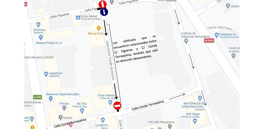 🚗 Los vehículos estacionados entre C/ Figueras y C/ Conde Torrepalma, deberán salir en dirección descendente hacia C/ Conde Torrepalma.