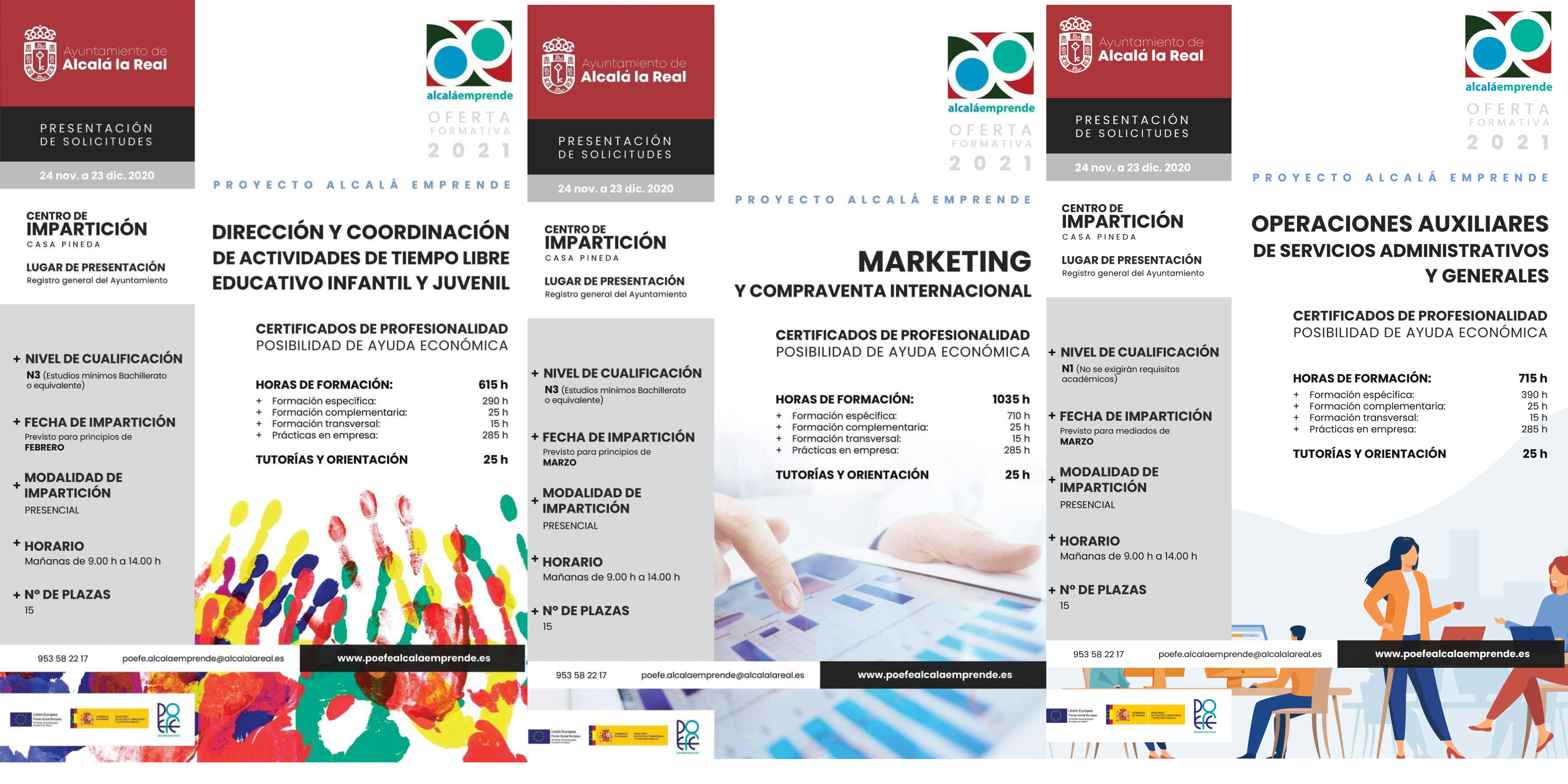 Las solicitudes se presentarán en el Registro general del Ayuntamiento hasta el 23 de diciembre de 2020. Para consultar más información, acceder la página www.poefealcalaemprende.es. También se puede contactar a través del correo poefe.alcalaemprende@alcalalareal.es o llamando al número 953-58 22 17.