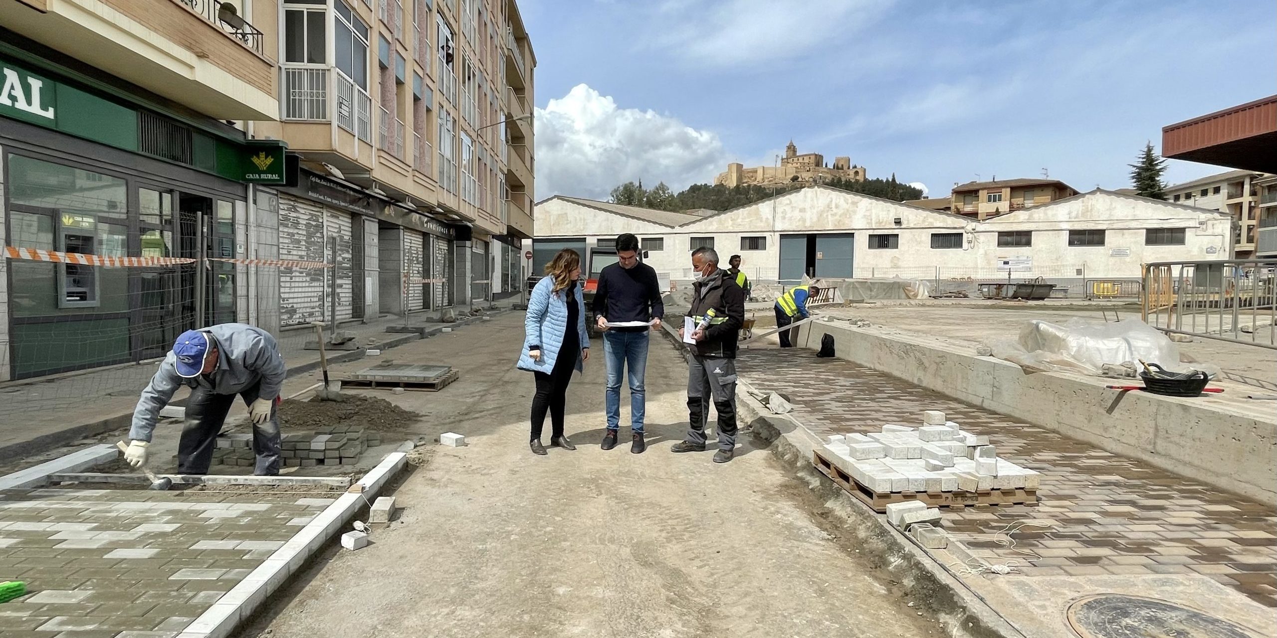El alcalde, Marino Aguilera y la edil de Urbanismo, Obras y Servicios, Mercedes Flores, han visitado las obras que se están llevando a cabo en el entorno de la Estación de Autobuses, en el marco del Programa de Fomento de Empleo Agrario (PFEA), por el que se está remodelando esta zona del casco urbano alcalaíno.