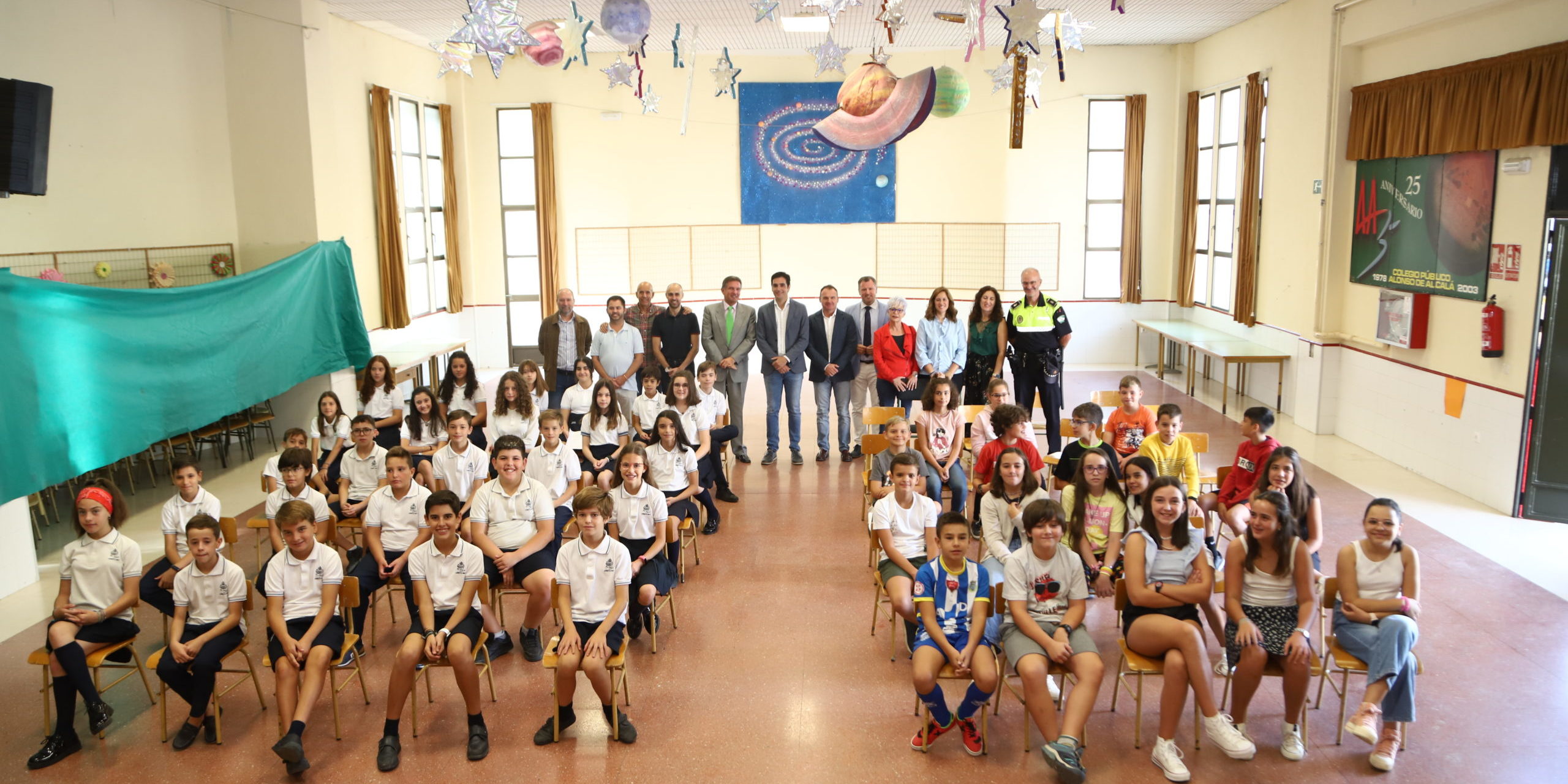 Los directores de ambos centros, José Ramon Dominguez de Torres y José Luis Pinto, han rubricado su compromiso con el proyecto, en un acto que ha tenido lugar en el salón de actos del Alonso de Alcalá. El alcalde ha animado a los escolares participantes de 6º de Primaria a cumplir con los objetivos marcados y ha elogiado el trabajo de Valeriano Muñoz, policía monitor del Parque Infantil de Tráfico (PIT), “una persona reconocida en la provincia por su experiencia y saber hacer, que tenemos la suerte de tener Alcalá, al servicio de la formación en seguridad vial”.