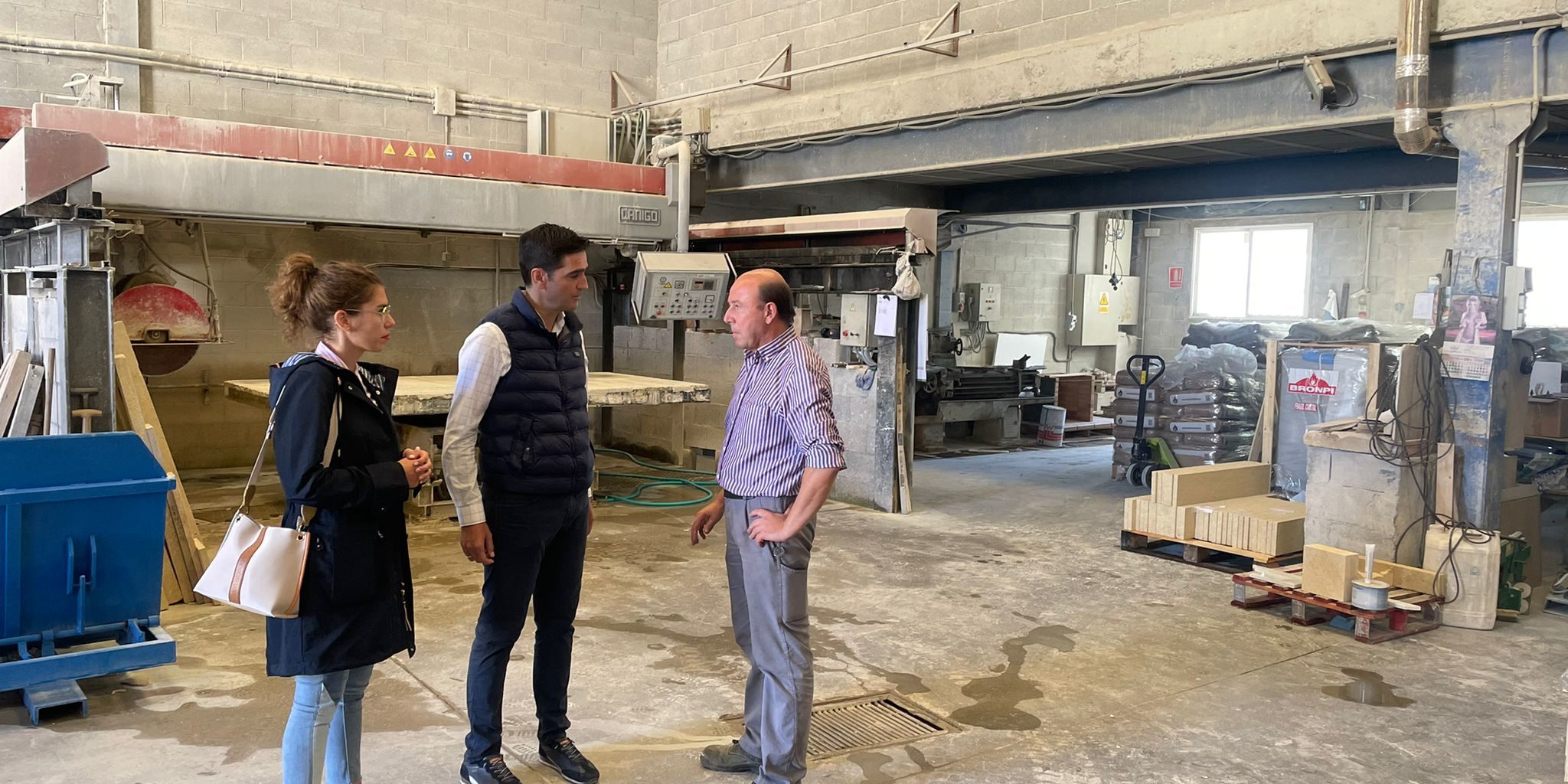 El alcalde, Marino Aguilera y la edil de Desarrollo Económico, Industria y Comercio, Ariadna Cobo, junto al técnico municipal de este área, Francisco García, han visitado la empresa Piedra Natural San Pedro, ubicada en el polígono industrial Fuente Granada, dentro de la gira de visitas institucionales que el gobierno puso en marcha al inicio de esta legislatura.