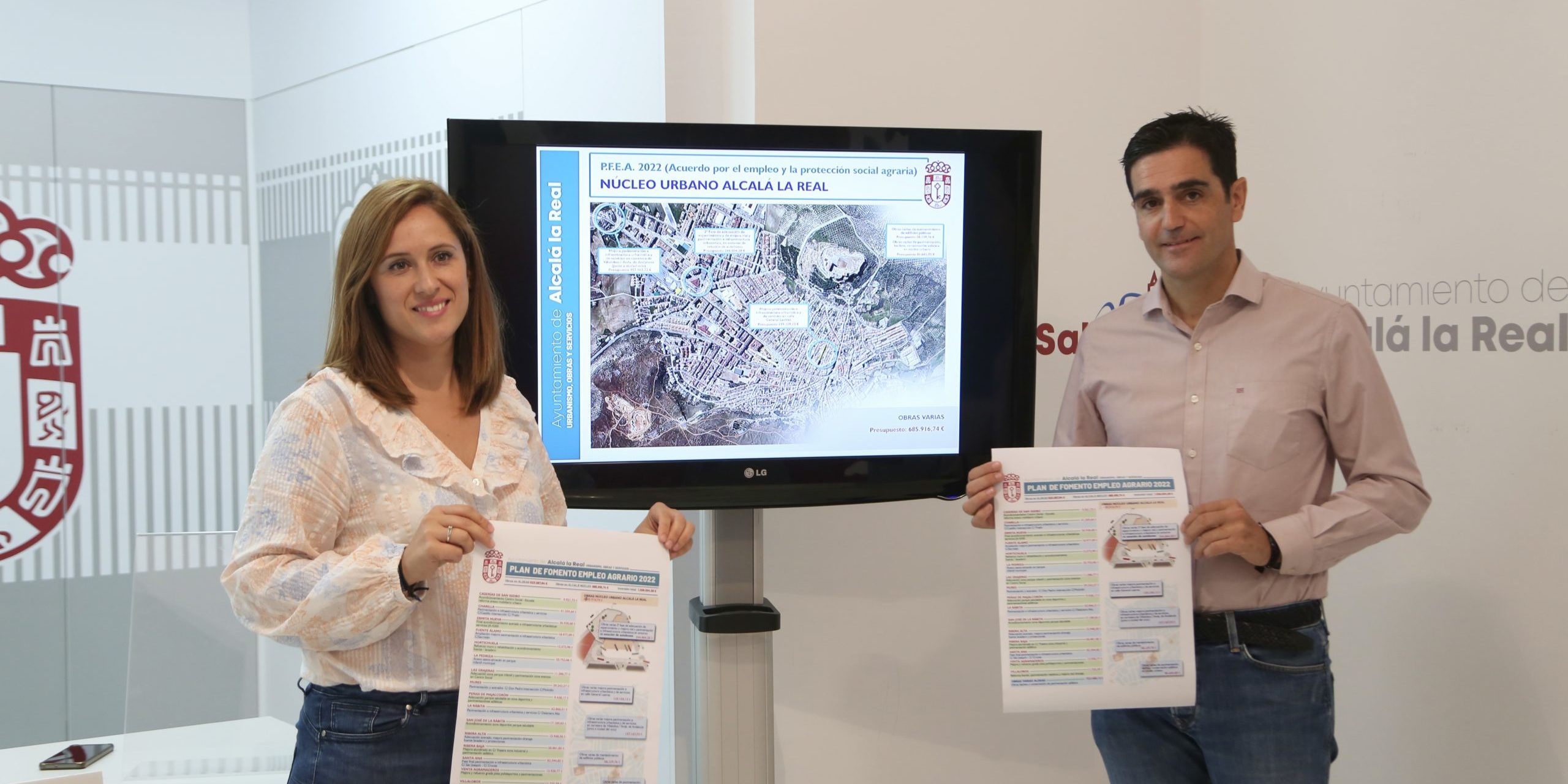 El alcalde, Marino Aguilera y la edil de Obras y Servicios, Mercedes Flores, han presentado este jueves las obras que integran el Plan de Fomento del Empleo Agrario (PFEA) 2022-2023 en el municipio. Con una inversión total de 1.209.004,58€, el montante se reparte en 685.916,74€ para el núcleo urbano y 523.087,84€ para el conjunto de las aldeas. En cuanto a financiación, el gobierno central aporta a través del SEPE 819.000€ para sufragar la contratación de personal, que completa el Ayuntamiento con 20.400€, mientras que la parte de material la financia la Junta de Andalucía con 276.640€ y Diputación Provincial de Jaén 92.213€.
