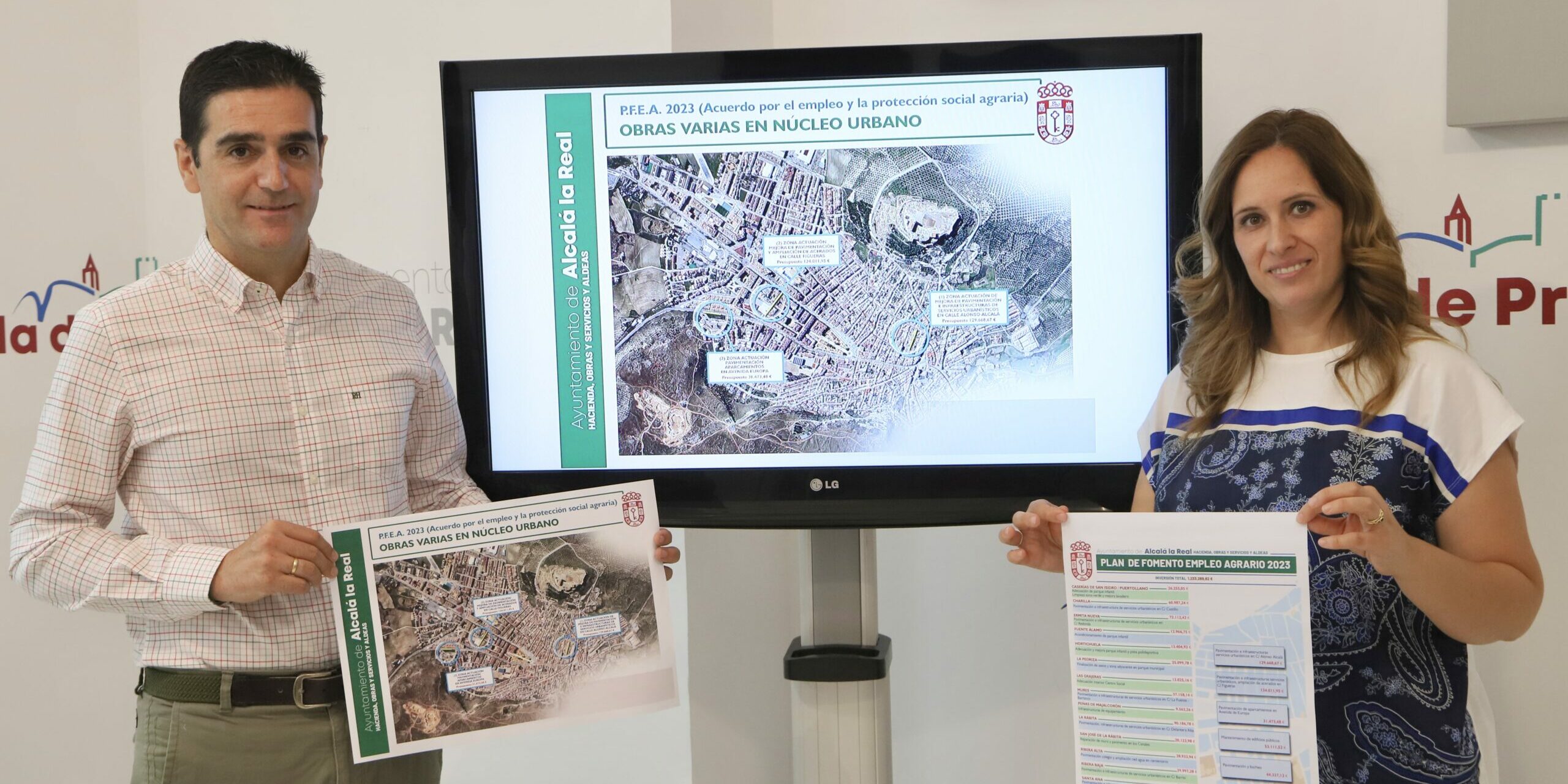 El alcalde, Marino Aguilera, y la edil de Obras y Servicios, Mercedes Flores, han dado a conocer este mediodía las actuaciones que recoge el Plan de Fomento del Empleo Agrario (PFEA) 2023-2024 y que se extienden por todo el municipio. La inversión total es de 1.233.269,82€, correspondiendo unos 390.000€ para el núcleo urbano y alrededor de 840.000€ para el conjunto de las aldeas.