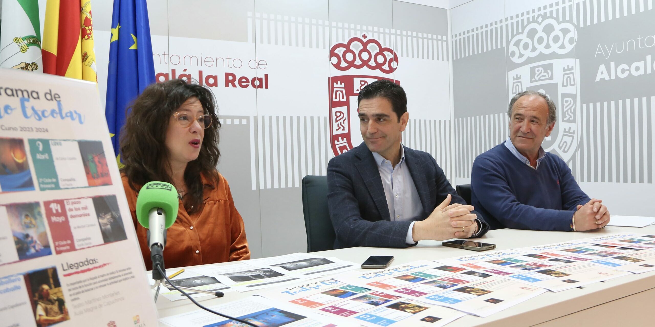 El alcalde, Marino Aguilera; el concejal de Educación, Baldomero Andréu; y la coordinadora del programa de Teatro Escolar y fundadora de la compañía “La Canela”, Analía Sisamón, han presentado este mediodía una nueva edición de dicho programa. En esta ocasión la cita se celebrará entre el 5 de abril y el 15 de mayo y, como en ediciones anteriores, se dirigirá a escolares de entre 2 y 12 años.