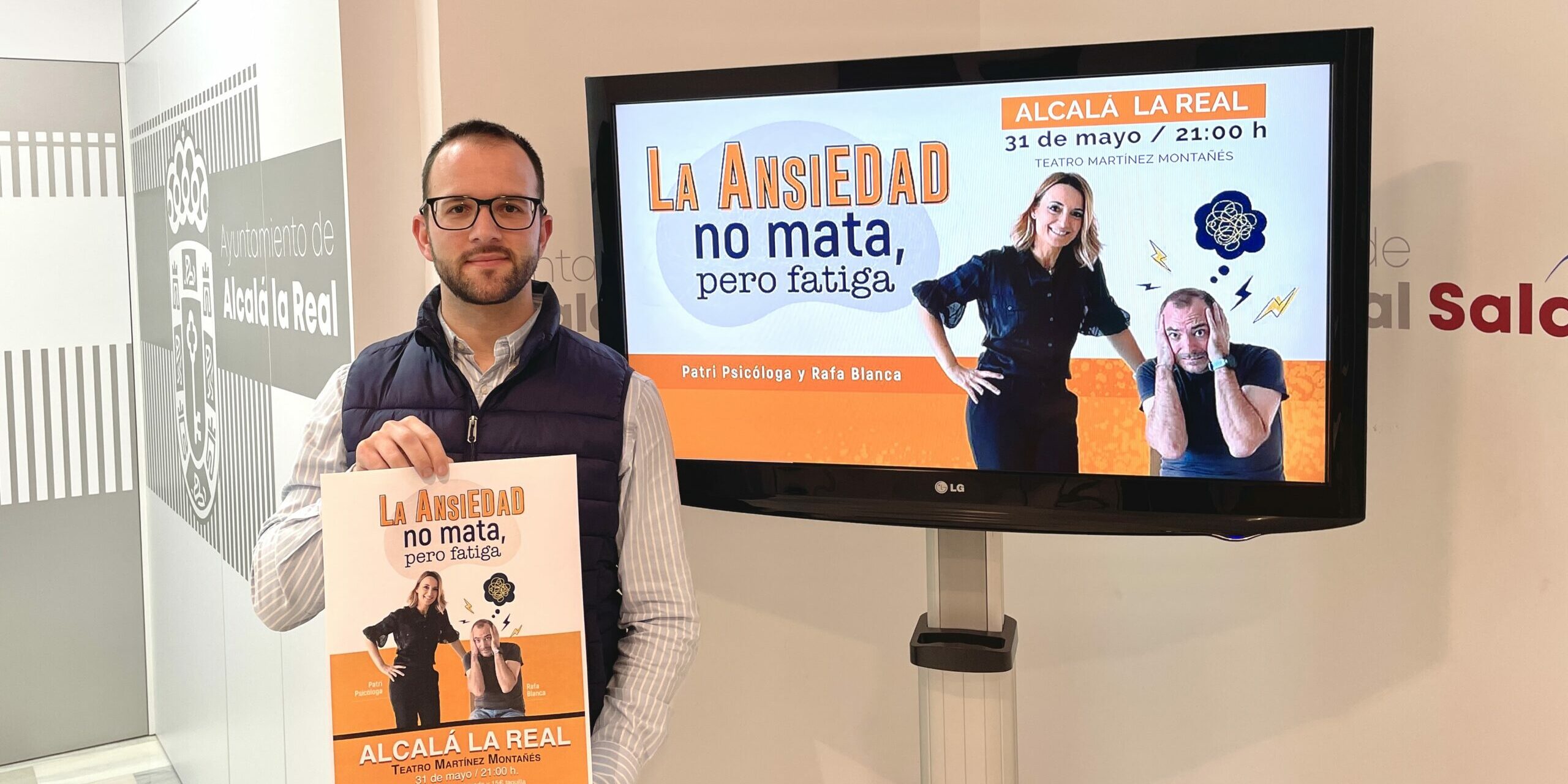 El concejal de Cultura, Juan Manuel Marchal, anuncia la próxima representación de “La ansiedad no mata, pero fatiga”, una terapia teatral con mucho humor, que podremos disfrutar el 31 de mayo a las 21:00 horas en el Teatro Martínez Montañés. Las entradas ya están a la venta al precio de 12€ anticipada y 15€ en taquilla y pueden adquirirse online en https://entradas.alcalalareal.es o en la oficina de Merlín Eventos.