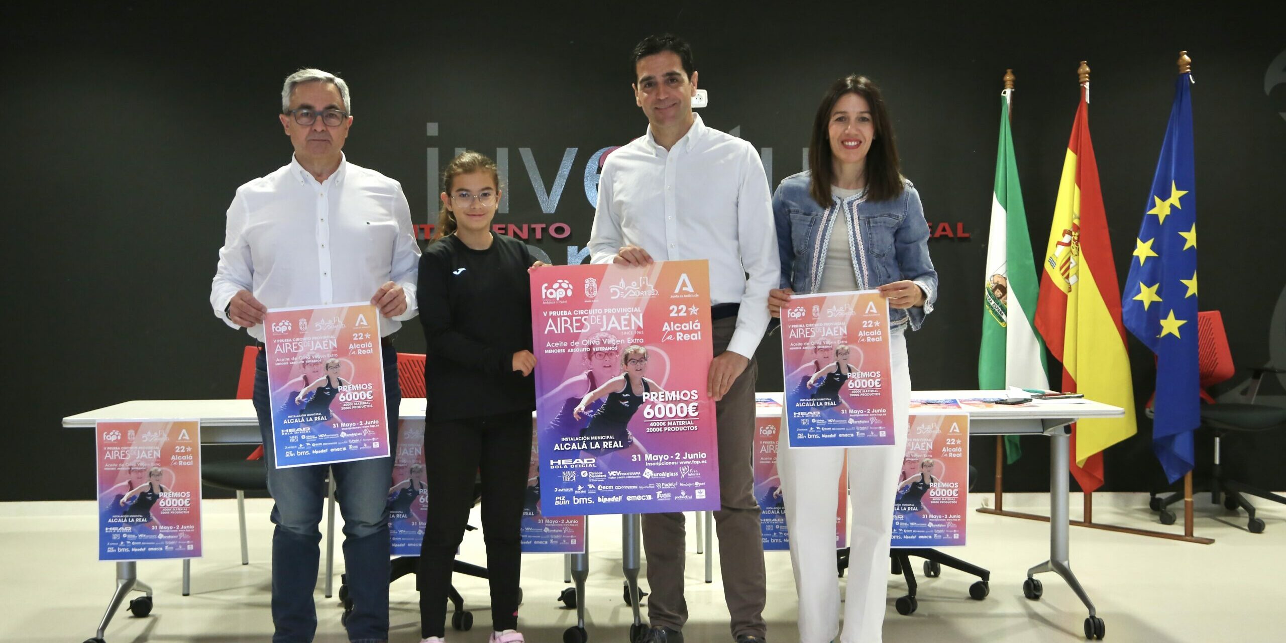 El área de Deportes ha anunciado esta mañana otro evento deportivo. Se trata de la quinta prueba del circuito provincial de pádel “Aires de Jaén”, que se disputará el 31 de mayo, 1 y 2 de junio. El alcalde, Marino Aguilera; la edil de Deportes, Belén Ramírez; el secretario de la Federación Andaluza de Pádel, Manuel Sánchez; y la jugadora local, Paula García, han asistido a la presentación.