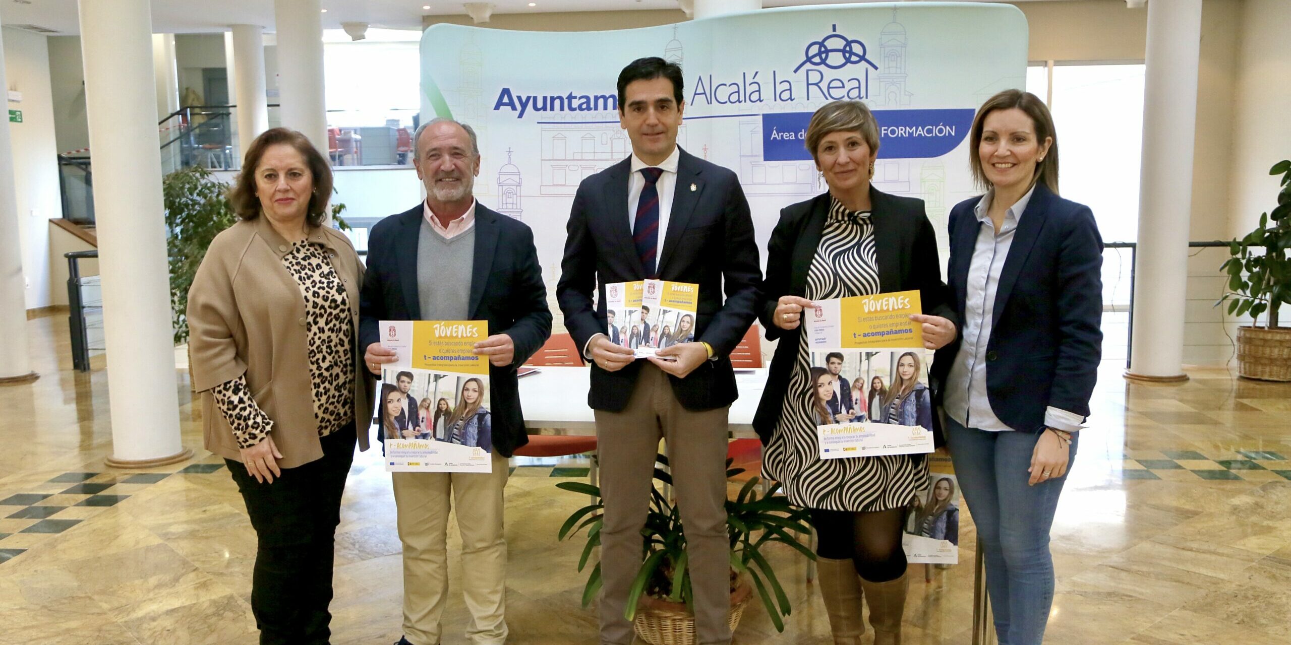 El alcalde, Marino Aguilera; el concejal de Formación y Empleo, Baldomero Andréu; y la la jefa de sección de este área, Francisca Liébana, han presentado esta mañana la segunda edición del programa “Proyectos Integrales para la Inserción Laboral, T-Acompañamos”, dirigido en esta ocasión a jóvenes de entre 18 y 29 años.