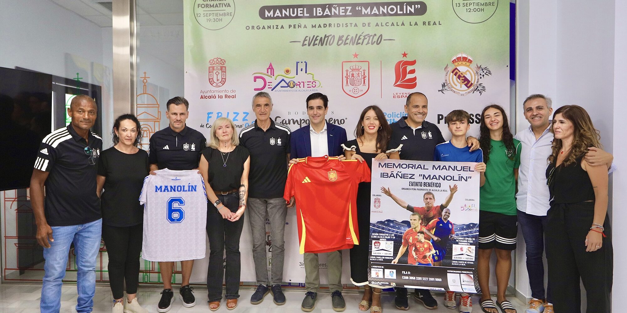 Las instalaciones deportivas municipales serán escenario del I Memorial Manuel Ibáñez ‘Manolín’, vecino del municipio y amante del fútbol fallecido en accidente laboral el año pasado. El evento, con carácter solidario, gira en torno al fútbol, con dos jornadas que combinarán formación, deporte y compromiso social. La presentación del evento ha contado con el alcalde, Marino Aguilera, la edil de Deportes, Belén Ramírez, familiares de Manuel, el presidente de Leyendas de España, Salva Ballesta, otros jugadores que participarán en el partido, representantes de la peña del Real Madrid y representantes de las asociaciones Gama y Buen Amor, beneficiarias del encuentro.