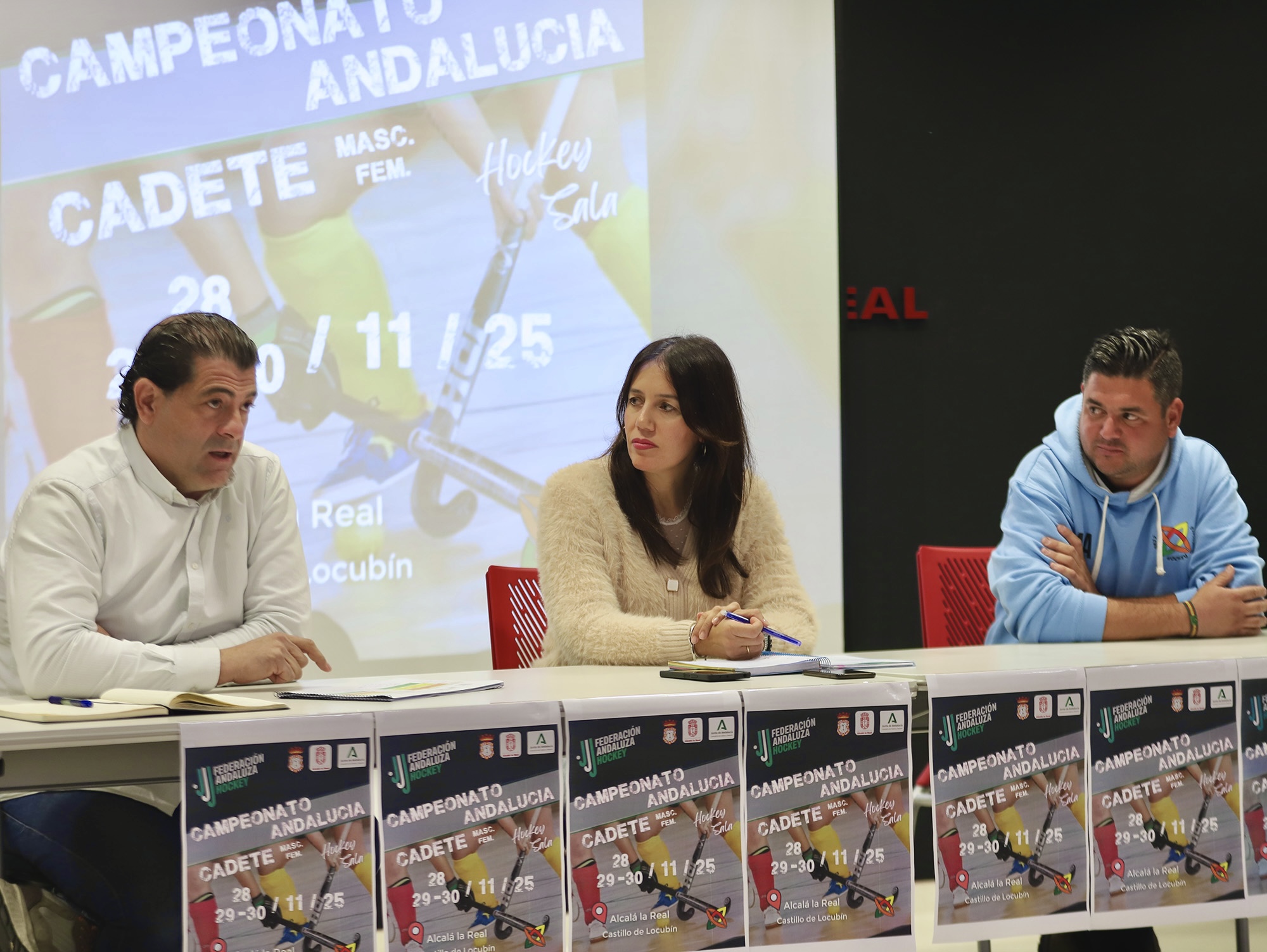 La cantera del hockey sala andaluz se dará cita, del 28 al 30 de noviembre, en los polideportivos de Alcalá y Castillo de Locubín para disputar el Campeonato de Andalucía Cadete Masculino y Femenino de Hockey Sala. La edil de Deportes, Belén Ramírez, ha presentado el evento este mediodía junto al presidente de la Federación Andaluza de Hockey (FAH), Antonio Aguilera y el presidente del Club Hockey Alcalá, Miguel Ángel Alba.
