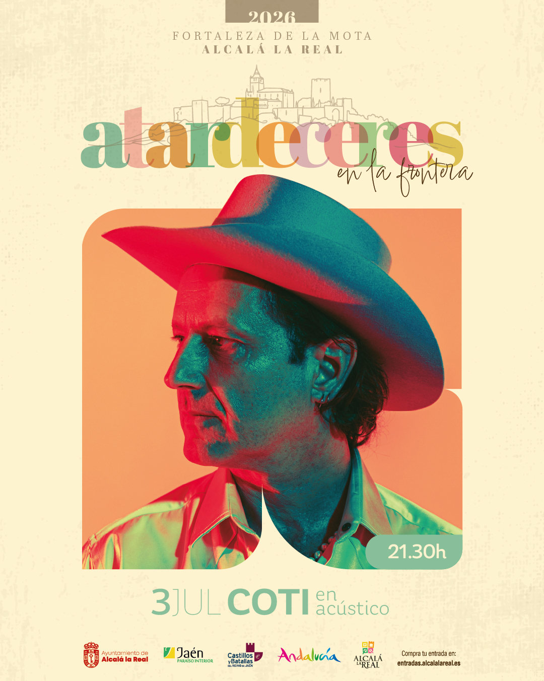 La sexta edición de Atardeceres en la Frontera ofrece el 4 de julio la actuación del cantautor argentino Coti, con 20 años de trayectoria, protagonizará un concierto acústico especial acompañado de piano, bandoneón y cuerdas, interpretando temas tan conocidos como “Nada fue un error” o “Antes que ver el sol”.